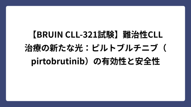 【BRUIN CLL-321試験】難治性CLL治療の新たな光:ピルトブルチニブ(pirtobrutinib)の有効性と安全性