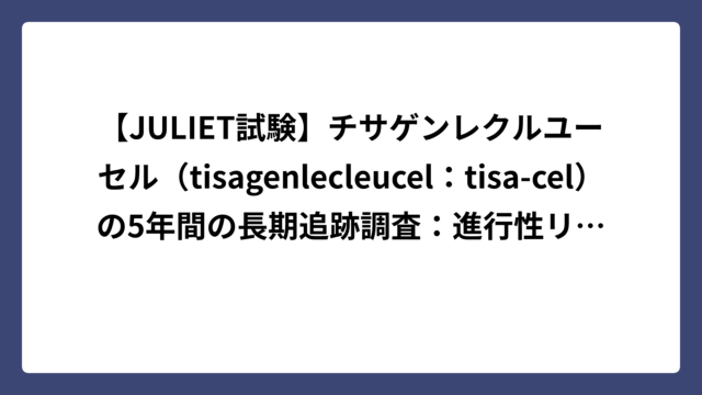 【JULIET試験】チサゲンレクルユーセル(tisagenlecleucel:tisa-cel)の5年間の長期追跡調査:進行性リンパ腫に対するCAR-T細胞療法が「治癒」をもたらす可能性