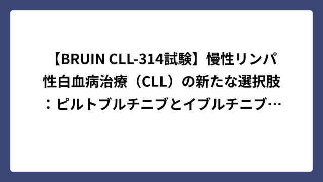 【BRUIN CLL-314試験】慢性リンパ性白血病治療(CLL)の新たな選択肢:ピルトブルチニブとイブルチニブの直接比較